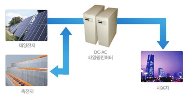 | 15 | 인버터 | 태양전지 어레이에서 발생한 직류 전력을 교류전력으로 변환하는 장치로 제어장치, 계통연계보호장치 등을 내장하고 있다 |