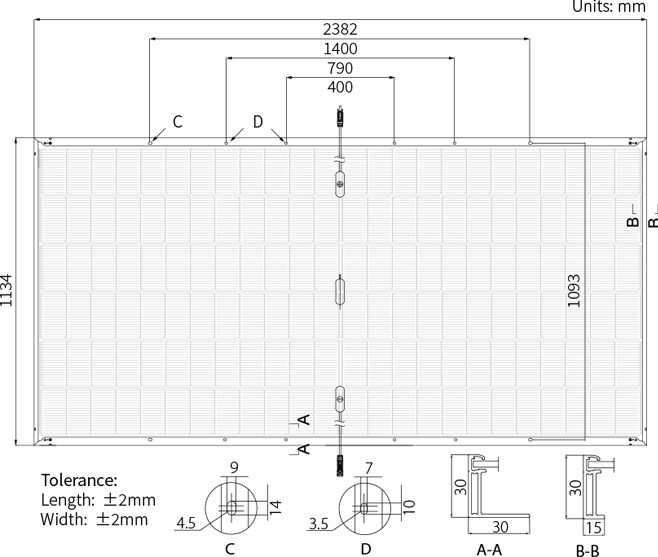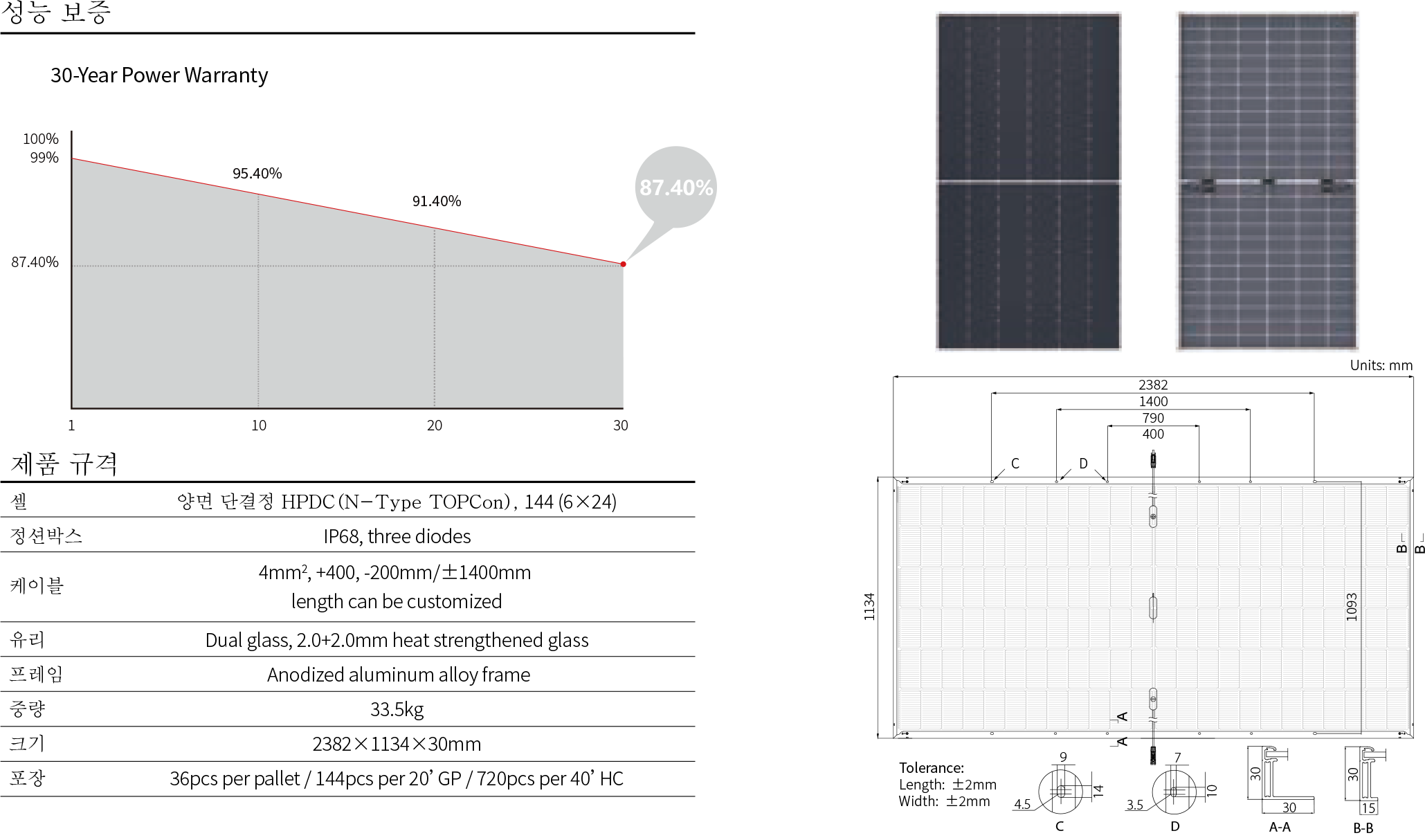 | 모듈 사이즈: | Ver.1 : 2278x1134x30mm Ver.2 : 2382x1134x30mm |